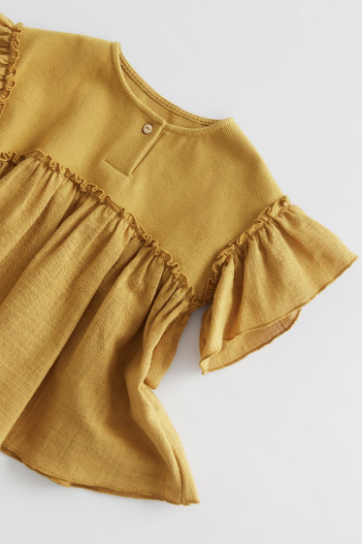 My first pick is this cute “Combination Oversize Blouse” in the mustard color! I love the mustard color, frilly sleeves and the “flowy” feel of this top is super sweet! It is available in two other colors, a pink and blue, as well!