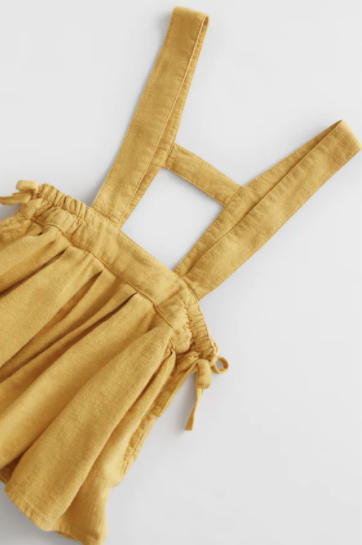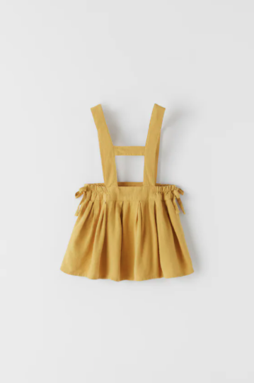 This cute “Linen Blend Strappy Skirt” skirtall is so sweet! Paired with a long sleeve and a pair of the “Textured Ribbed Leggings” for the fall, and the “Printed Ribbed Shirt” in Ecru for the end of summer, this outfit couldn’t get any cuter!