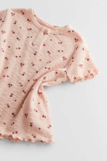 PRINTED RIBBED SHIRT IN DARK PINK– $12.90