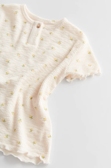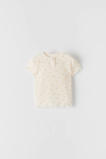 PRINTED RIBBED SHIRT IN ECRU – $12.90